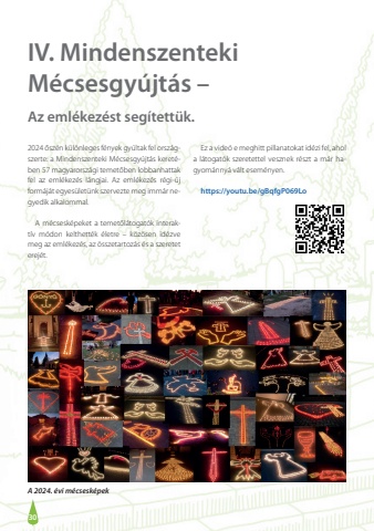 30Az eml%u00e9kez%u00e9st seg%u00edtett%u00fck.IV. Mindenszenteki M%u00e9csesgy%u00fajt%u00e1s %u2013 2024 %u0151sz%u00e9n k%u00fcl%u00f6nleges f%u00e9nyek gy%u00faltak fel orsz%u00e1gszerte: a Mindenszenteki M%u00e9csesgy%u00fajt%u00e1s keret%u00e9ben 57 magyarorsz%u00e1gi temet%u0151ben lobbanhattak fel az eml%u00e9kez%u00e9s l%u00e1ngjai. Az eml%u00e9kez%u00e9s r%u00e9gi-%u00faj form%u00e1j%u00e1t egyes%u00fclet%u00fcnk szervezte meg imm%u00e1r negyedik alkalommal.A m%u00e9csesk%u00e9peket a temet%u0151l%u00e1togat%u00f3k interakt%u00edv m%u00f3don kelthett%u00e9k %u00e9letre %u2013 k%u00f6z%u00f6sen id%u00e9zve meg az eml%u00e9kez%u00e9s, az %u00f6sszetartoz%u00e1s %u00e9s a szeretet erej%u00e9t.Ez a vide%u00f3 e meghitt pillanatokat id%u00e9zi fel, ahol a l%u00e1togat%u00f3k szeretettel vesznek r%u00e9szt a m%u00e1r hagyom%u00e1nny%u00e1 v%u00e1lt esem%u00e9nyen.https://youtu.be/gBqfgP069LoA 2024. %u00e9vi m%u00e9csesk%u00e9pek