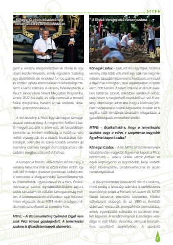 7gant a verseny megrendez%u00e9s%u00e9nek %u00f6tlete is: egy olyan kezdem%u00e9nyez%u00e9s, amely egyszerre tiszteleg egy alul%u00e9rt%u00e9kelt, de rendk%u00edv%u00fcl fontos szakma el%u0151tt, %u00e9s k%u00f6zben %u00fajfajta kommunik%u00e1ci%u00f3s lehet%u0151s%u00e9get teremt a v%u00e1ros sz%u00e1m%u00e1ra. A verseny beleilleszkedik a Rauch J%u00e1nos V%u00e1rosi S%u00edrkert Meg%u00faj%u00edt%u00e1si Programba, amely 2022 %u00f3ta zajlik, %u00e9s c%u00e9lja nemcsak a temet%u0151 fizikai meg%u00faj%u00edt%u00e1sa, hanem annak szellemi, t%u00e1rsadalmi %u00fajrapozicion%u00e1l%u00e1sa is.A rendezv%u00e9ny a P%u00e9csi Egyh%u00e1zmegye t%u00e1mogat%u00e1s%u00e1val val%u00f3sult meg. A megnyit%u00f3n Felf%u00f6ldi L%u00e1szl%u00f3 megy%u00e9s p%u00fcsp%u00f6k is jelen volt, aki besz%u00e9d%u00e9ben kiemelte az emberi m%u00e9lt%u00f3s%u00e1g, a hal%u00e1lhoz val%u00f3 m%u00e9lt%u00f3 viszonyul%u00e1s %u00e9s a s%u00edr%u00e1s%u00f3k hivat%u00e1s%u00e1nak fontoss%u00e1g%u00e1t. Jelenl%u00e9te %u00e9s szavai tov%u00e1bb emelt%u00e9k az esem%u00e9ny szellemi rangj%u00e1t %u00e9s hozz%u00e1j%u00e1rultak a t%u00e1rsadalmi megbecs%u00fcl%u00e9s er%u0151s%u00edt%u00e9s%u00e9hez.A kamp%u00e1nyt hossz%u00fa el%u0151k%u00e9sz%u00fclet el%u0151zte meg, a verseny helysz%u00edne m%u00e1r az el%u0151z%u0151 %u00e9vben eld%u0151lt, %u00edgy volt id%u0151 minden r%u00e9szletet gondosan kidolgozni. A szervez%u00e9s a Magyarorsz%u00e1gi Temet%u0151fenntart%u00f3k %u00e9s %u00dczemeltet%u0151k Egyes%u00fclet%u00e9vel %u00e9s a P%u00e9csi %u00d6nkorm%u00e1nyzattal szoros egy%u00fcttm%u0171k%u00f6d%u00e9sben zajlott, sz%u00e9les t%u00e1rsadalmi %u00e9s v%u00e1llalati t%u00e1mogatotts%u00e1g mellett. A kommunik%u00e1ci%u00f3t els%u0151sorban saj%u00e1t fel%u00fcleteinken v%u00e9gezt%u00fck, de az MTFE r%u00e9v%u00e9n orsz%u00e1gos m%u00e9diumokhoz is eljutott az esem%u00e9ny h%u00edre.MTFE:%u2013 A V%u00e1rosmarketing Gy%u00e9m%u00e1nt D%u00edjjal nem csak P%u00e9cs v%u00e1rosa gazdagodott. A temetkez%u00e9si szakma is %u00faj ter%u00fcleten kapott elismer%u00e9st. K%u0151hegyi Csaba: %u2013 Igen, ezt mi is %u00edgy l%u00e1tjuk, hiszen a verseny c%u00e9lja t%u00f6bb volt, mint egy szakmai megm%u00e9rettet%u00e9s: t%u00e1rsadalmi %u00fczenetet is hordozott, ami ezzel a d%u00edjjal m%u00e1s k%u00f6zegben, m%u00e1s aspektus%u00e1ban is szem el%u00e9 tudott ker%u00fclni. A s%u00edr%u00e1s%u00f3 szakma az elm%u00falt %u00e9vekben h%u00e1tt%u00e9rbe szorult, mik%u00f6zben rendk%u00edv%u00fcl neh%u00e9z, pszich%u00e9sen is megterhel%u0151 munk%u00e1r%u00f3l van sz%u00f3. E verseny lehet%u0151s%u00e9get adott arra, hogy a k%u00f6z%u00f6ns%u00e9g jobban megismerje e hivat%u00e1s k%u00e9pvisel%u0151it, %u00e9s tal%u00e1n ez is seg%u00edti a hal%u00e1l t%u00e9m%u00e1j%u00e1nak t%u00e1rsadalmi elfogad%u00e1s%u00e1t, a gy%u00e1szfeldolgoz%u00e1s emberibb%u00e9 t%u00e9tel%u00e9t.MTFE:%u2013 %u00c9rz%u00e9kelhet%u0151-e, hogy a temetkez%u00e9si szakma vagy a v%u00e1ros e szegmense nagyobb figyelmet kapott az%u00f3ta?K%u0151hegyi Csaba: %u2013 A VII. MTFE S%u00edr%u00e1s%u00f3 Versenynek k%u00f6sz%u00f6nhet%u0151en nagyobb figyelmet kapott a P%u00e9csi K%u00f6ztemet%u0151 %u2013 amely vid%u00e9ki viszonylatban az egyik legnagyobb %u00e9s legz%u00f6ldebb, helyi v%u00e9detts%u00e9g%u0171 n%u00f6v%u00e9nyzettel, gesztenyefasorral %u00e9s jap%u00e1n cseresznyef%u00e1kkal.A megm%u00e9rettet%u00e9s innov%u00e1ci%u00f3i mind a szakma, mind pedig a lakoss%u00e1g sz%u00e1m%u00e1ra is eml%u00e9kezetes esem%u00e9nny%u00e9 tett%u00e9k a P%u00e9csett rendezett VII. MTFE S%u00edr%u00e1s%u00f3 Versenyt: interakt%u00edv k%u00f6zvet%u00edt%u00e9s, f%u00f6ldbe s%u00fcllyesztett dobog%u00f3, %u00e9s az 1880-as %u00e9vekb%u0151l sz%u00e1rmaz%u00f3 restaur%u00e1lt pompahint%u00f3 bemutat%u00e1sa, amely egyed%u00fcl%u00e1ll%u00f3 kultur%u00e1lis %u00e9s t%u00f6rt%u00e9neti %u00e9rt%u00e9ket k%u00e9pvisel. A rendezv%u00e9nynek k%u00fcl%u00f6nleges vend%u00e9ge is volt Major Veronika, olimpiai bronz%u00e9rmes sportl%u00f6v%u0151 szem%u00e9ly%u00e9ben. A sportol%u00f3 K%u0151hegyi Csaba is k%u00f6sz%u00f6nt%u00f6tte a versenyz%u0151ket %u00e9s az %u00e9rdekl%u0151d%u0151ket.A S%u00edr%u00e1s%u00f3-Verseny els%u0151 versenysz%u00e1ma